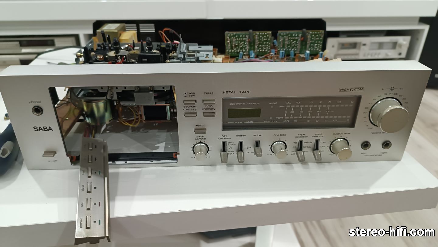 Wpadł mi ostatnio magnetofon Saba CD 278, wewnątrz łudząco podobny do modelu CD 274 z systemem redukcji szumów high-com (często spotykana opcja w deckach firmy Saba) jak w modelu CD 362. Magnetofon kiepsko przewijał wstecz i trochę przeciągał, więc pasek do wymiany obowiązkowo oraz idler. Pasek był pod ręką ,to włożyłem nowy. Idler niestety jest stary i czeka aż dotrze nowy. Chwilowo działa na starym,ale słabo sobie radzi z przewijaniem wstecz zwłaszcza gdy startuje z dużą ilością taśmy na rolce,gdy jest przewijane od mniej więcej środka kasety,to da radę przewinąć do samego końca. Całkiem dobrze nagrywa i odtwarza. Drobne korekty były jednak niezbędne przy pomocy kasety forumowej